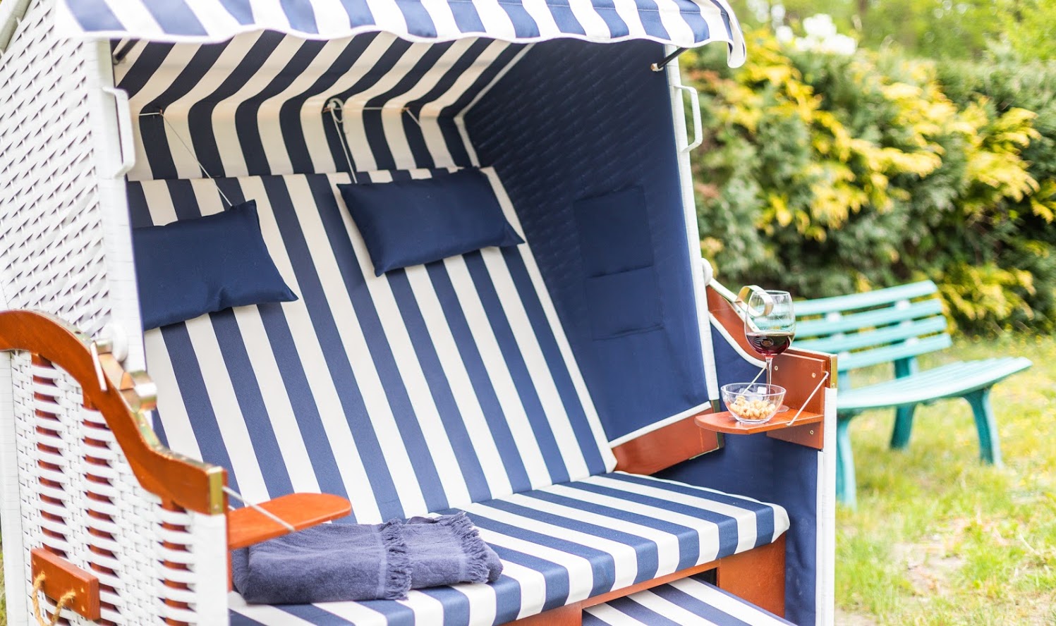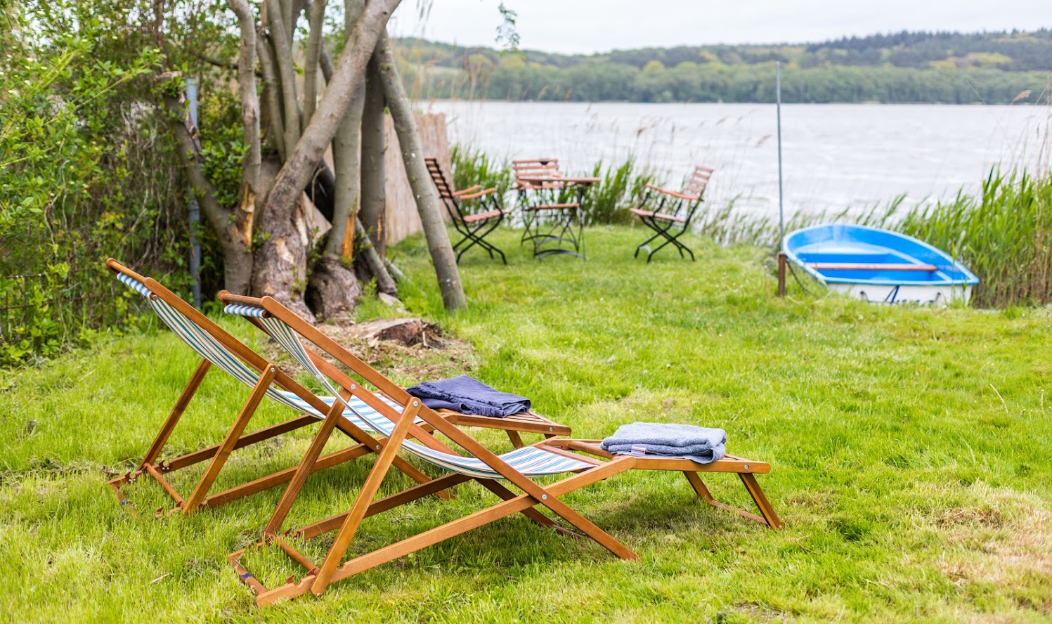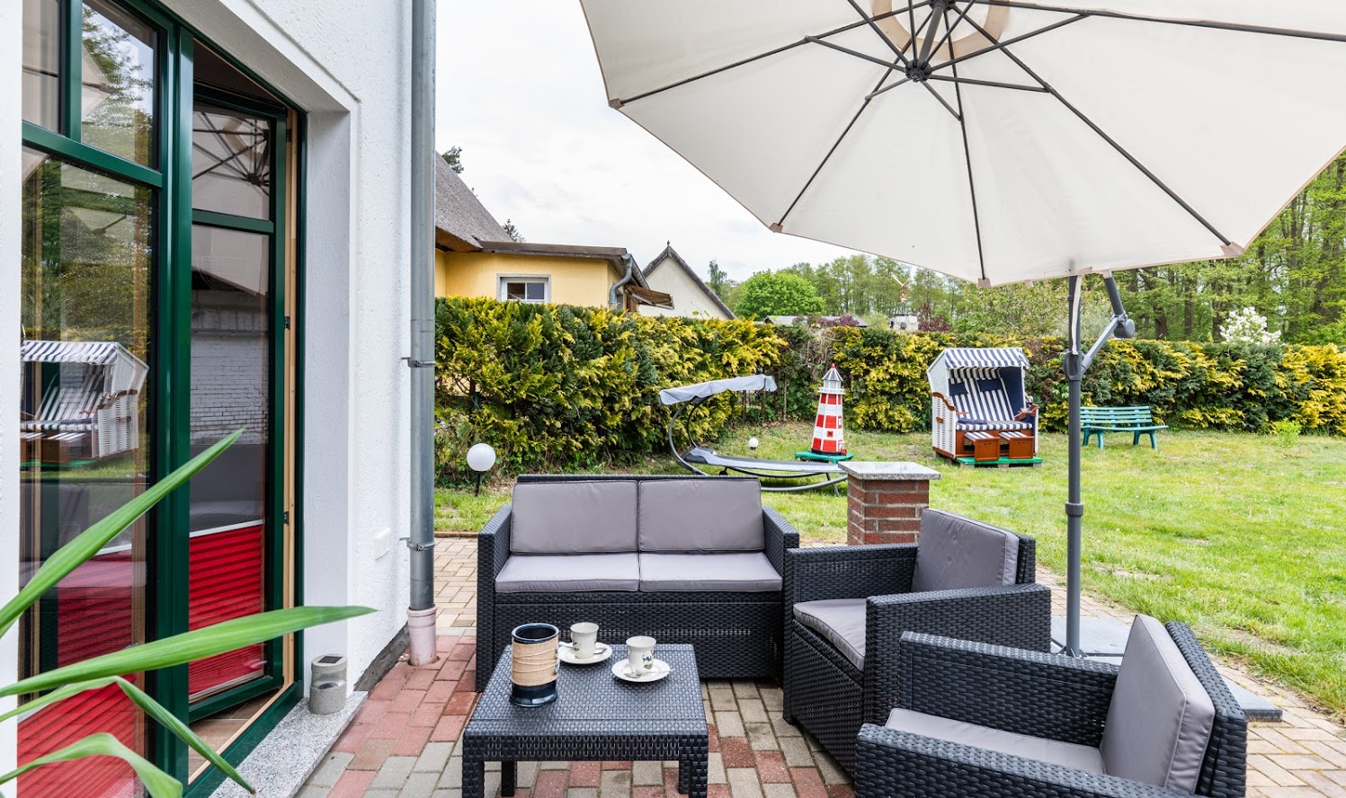 Terrasse + Möbel, Pkw-Stellplatz, Bootsliegeplatz am Schmollensee, Strandkorb